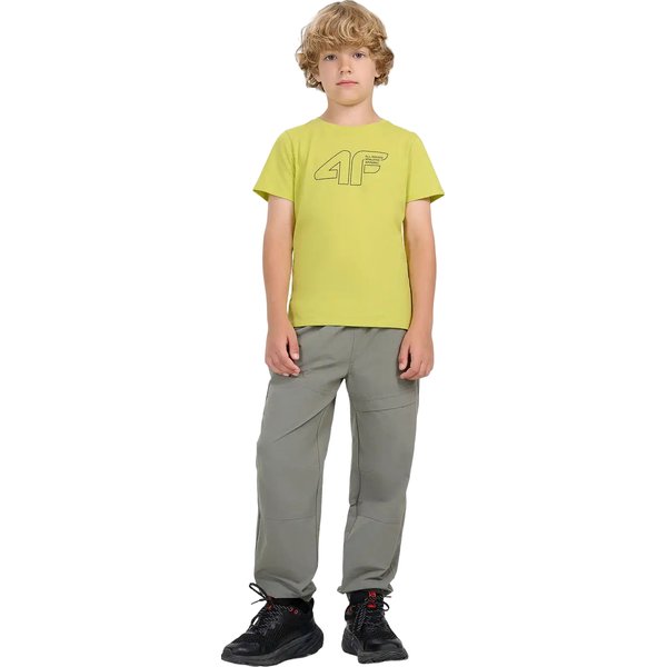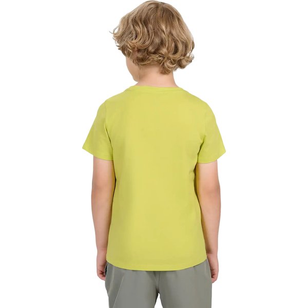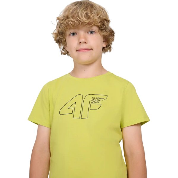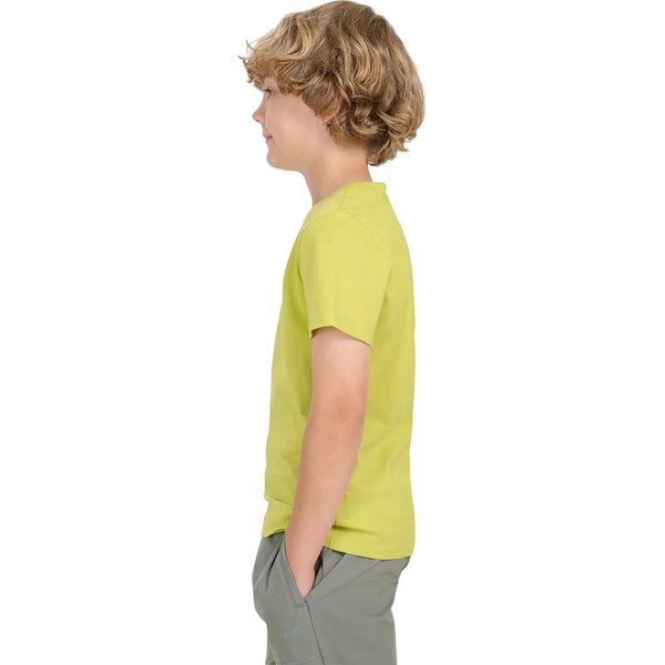 Koszulka chłopięca marki 4F to idealne połączenie wygody i stylu, które doceni każdy młody miłośnik aktywnego trybu życia. Wykonana w 100% z oddychającej bawełny, zapewnia uczucie świeżości i komfortu przez cały dzień. Dzięki standardowemu krojowi i okrągłemu dekoltowi, koszulka doskonale dopasowuje się do sylwetki, nie krępując ruchów podczas zabawy czy treningu. Krótki rękaw dodatkowo zwiększa swobodę noszenia. Na przodzie znajduje się stylowy nadruk z napisem, który nadaje koszulce nowoczesny, sportowy charakter. To nieodzowny element garderoby każdego chłopca, który ceni sobie funkcjonalność i modny wygląd.