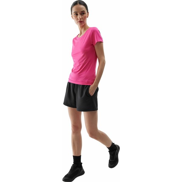 Koszulka damska 4FWSS24TFTSF604 4F to idealny wybór dla aktywnych kobiet. Wykonana z poliestru i elastanu, zapewnia komfort i swobodę ruchów. Dzięki technologii 4F Dry, koszulka jest szybkoschnąca i skutecznie odprowadza wilgoć. Krótki rękaw i okrągły dekolt gwarantują wygodę noszenia. Logo marki umieszczone na piersi nadaje jej charakteru. Damska koszulka 4F ma regularny krój, który pasuje do każdej sylwetki.