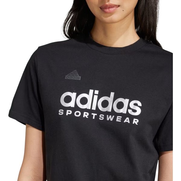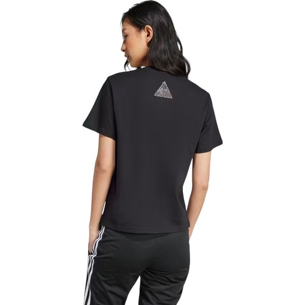 Koszulka damska House of Tiro Metallic od Adidas to idealny wybór dla kobiet pragnących łączyć wygodę z modnym wyglądem. Wykonana z wysokiej jakości bawełny, oferuje komfort noszenia oraz stylowy design z metalicznym połyskiem, który przyciąga wzrok. Dzięki klasycznemu krojowi i prążkowanemu dekoltowi, koszulka jest uniwersalna i doskonale pasuje do różnych stylizacji. Nadruk oraz logo na przodzie dodają sportowego charakteru, a trójkątny wzór na plecach stanowi oryginalny akcent. Koszulka sięga do bioder, co sprawia, że jest świetnym uzupełnieniem casualowych stylizacji na każdą okazję.