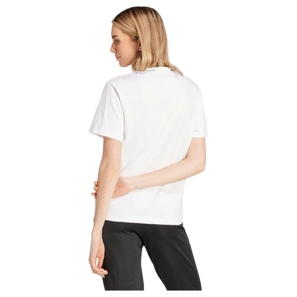 Koszulka damska Positivity Graphic Adidas to idealne połączenie stylu i komfortu. Wykonana w 100% z bawełny, gwarantuje lekkość i oddychalność, co sprawia, że jest doskonała na każdą porę roku. Jej klasyczny krój oraz długość do bioder zapewniają swobodę ruchów, a zaokrąglony dekolt i krótki rękaw zwiększają komfort noszenia. Grafika nadaje koszulce unikalnego charakteru, idealnego dla osób ceniących oryginalność. Dodatkowym akcentem jest subtelna metka z logo na dole, podkreślająca wysoką jakość i autentyczność marki Adidas.