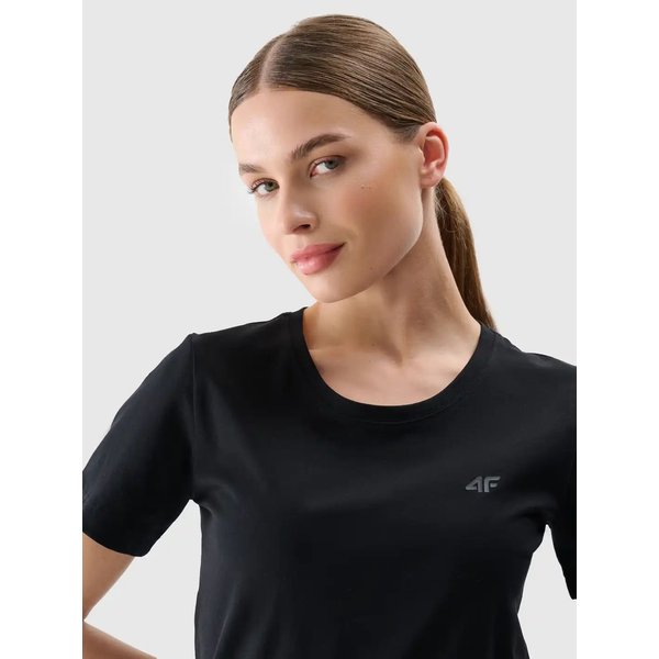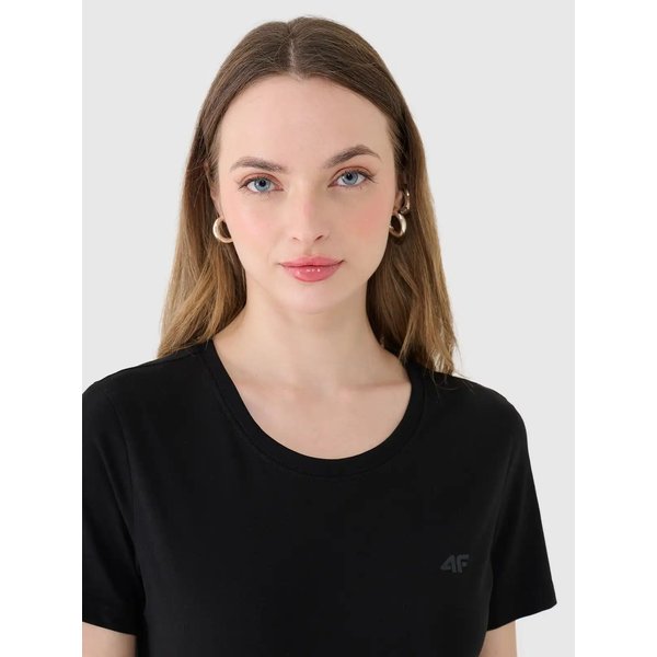 Damska koszulka od 4F to idealny wybór dla kobiet ceniących sobie komfort i styl na co dzień. Wykonana w 100% z bawełny typu single jersey, zapewnia przewiewność i miękkość, co przekłada się na wygodę noszenia. Krótki rękaw i okrągły dekolt dodają klasycznej elegancji, która sprawdzi się w każdej stylizacji. Gładka powierzchnia nadaje jej uniwersalny charakter, a elastyczny materiał dopasowuje się do sylwetki, podkreślając jej atuty. Długość do bioder zapewnia swobodę ruchów. To doskonały wybór na co dzień, łączący funkcjonalność z modnym designem.