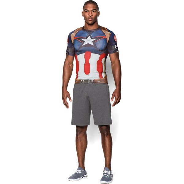 Trenujesz i wyglądasz coraz lepiej - pokaż to z przymrużeniem oka! Załóż Alter Ego Compression SS Kapitan Ameryka - wysokiej jakości koszulkę z intrygującym nadrukiem, wykonaną z wyjątkowo lekkiej tkaniny HeatGear®.