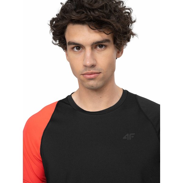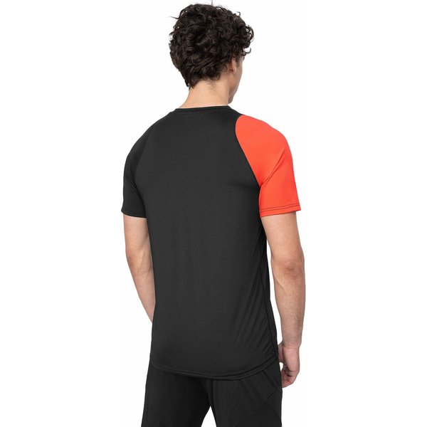 Ta koszulka treningowa męska z dodatkiem materiałów z recyklingu jest idealna dla osób dbających o środowisko. Wykonana z elastycznej dzianiny, zapewnia wygodę i swobodę ruchów podczas treningu. Dzięki technologii 4FDry z szybkoschnącymi włóknami, wilgoć jest skutecznie odprowadzana na zewnątrz, co zapewnia suchość i komfort podczas wysiłku. Perforowany materiał pod pachami usprawnia przepływ powietrza, a płaskie szwy nie powodują otarć i podrażnień skóry. Koszulka ta ma także okrągły dekolt i slim fit, co dodaje stylu i elegancji.