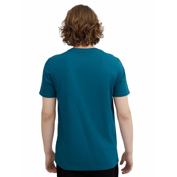 Ten t-shirt z pewnością będzie dobrze układał się na ciele, co wynika z regularnego kroju. Materiał jest miły w dotyku i oddychający, co wynika z wysokogatunkowej bawełny. Tkanina jest lekka i oddychająca, dlatego nie musisz obawiać się przepocenia skóry w ciepłe dni. Zaokrąglony dekolt pozwoli na większą pewność siebie podczas codziennych aktywności.