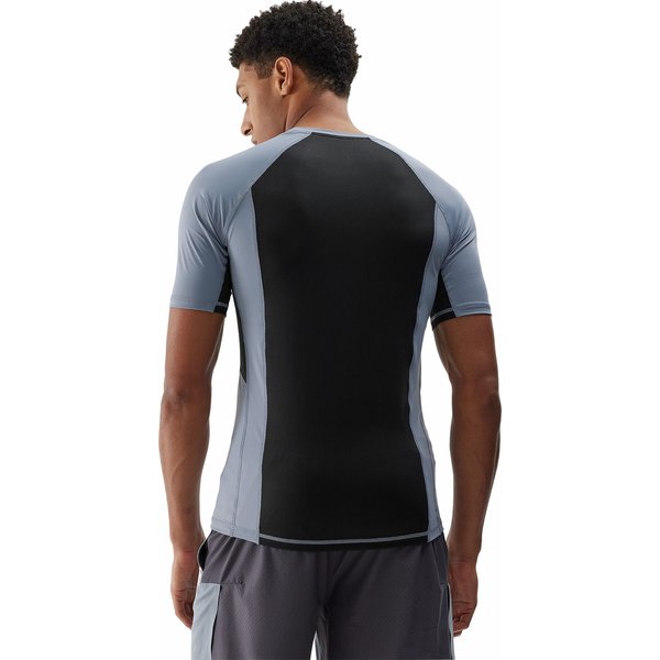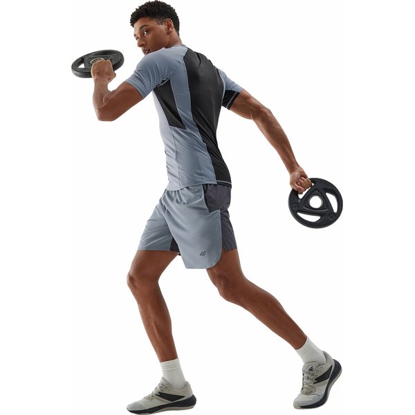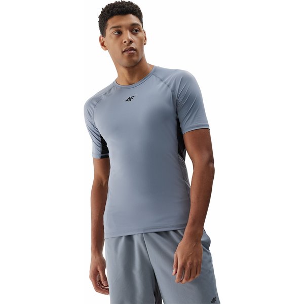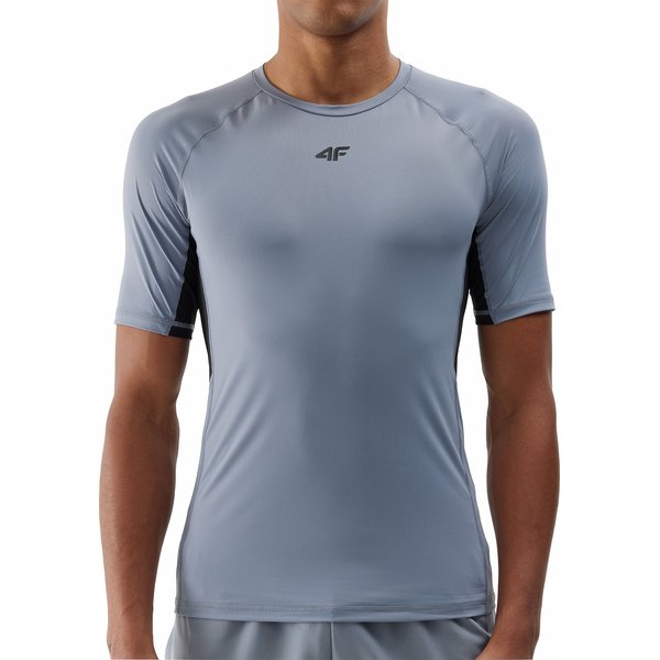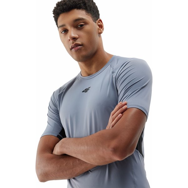 Koszulka męska 4FWSS24TFTSM700 4F to doskonały wybór dla aktywnych mężczyzn. Wykonana z wysokiej jakości materiałów, gwarantuje komfort i swobodę ruchów. Dzięki technologii 4F Dry koszulka szybko schnie, co zapewnia uczucie świeżości przez cały trening. Panel wentylacyjny zapewnia odpowiednią cyrkulację powietrza, co minimalizuje ryzyko przegrzania. Krótki rękaw, okrągły dekolt oraz krój slim sprawiają, że koszulka doskonale dopasowuje się do sylwetki. Dodatkowo, logo marki umieszczone na piersi nadaje koszulce stylowego wyglądu. Teraz możesz trenować w pełni komfortowo i modnie!