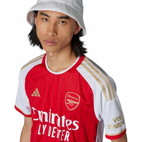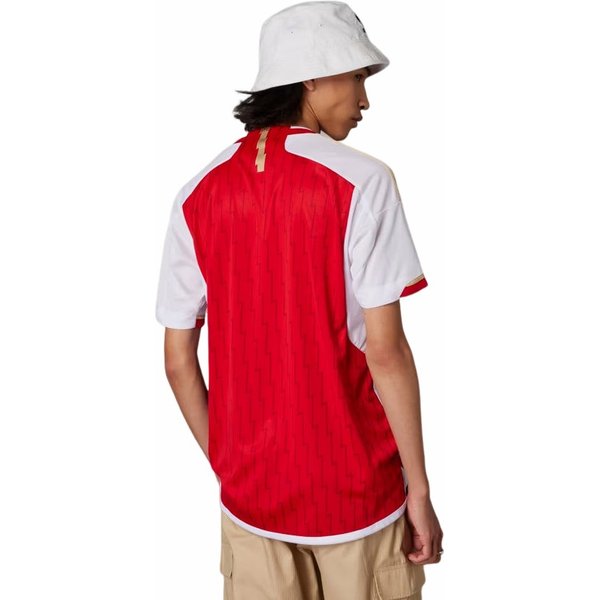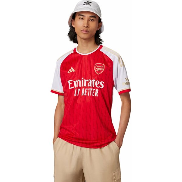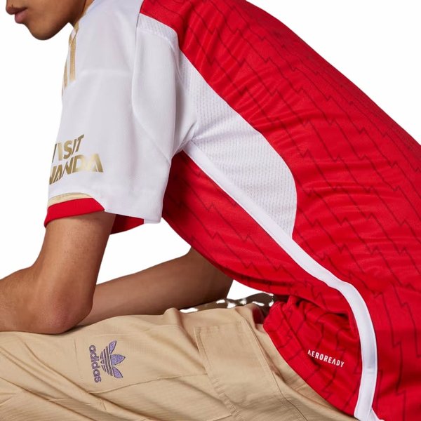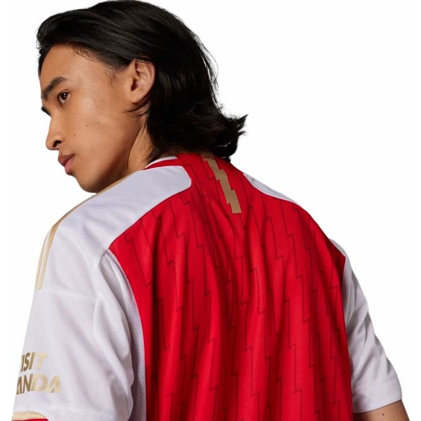 Koszulka męska Arsenal 23/24 Home Adidas to doskonały wybór dla każdego kibica. Inspirujący wzór z błyskawicami i złotymi detalami upamiętnia wyjątkowe osiągnięcie drużyny. Wykonana z wysokiej jakości materiałów, zapewnia suchy komfort dzięki technologii Aeroready. Dopasowany krój oraz przedłużony tył gwarantują doskonałe dopasowanie. Logo Arsenalu na piersi i naszywka klubowa podkreślają Twoją dumę z drużyny. Dodatkowo, koszulka jest ekologiczna, wykonana w 100% z materiałów pochodzących z recyklingu. Niezwykłe detale, jak zaokrąglony dekolt, czy mankiety ze ściągaczami, sprawiają, że ta koszulka wyróżnia się spośród innych.