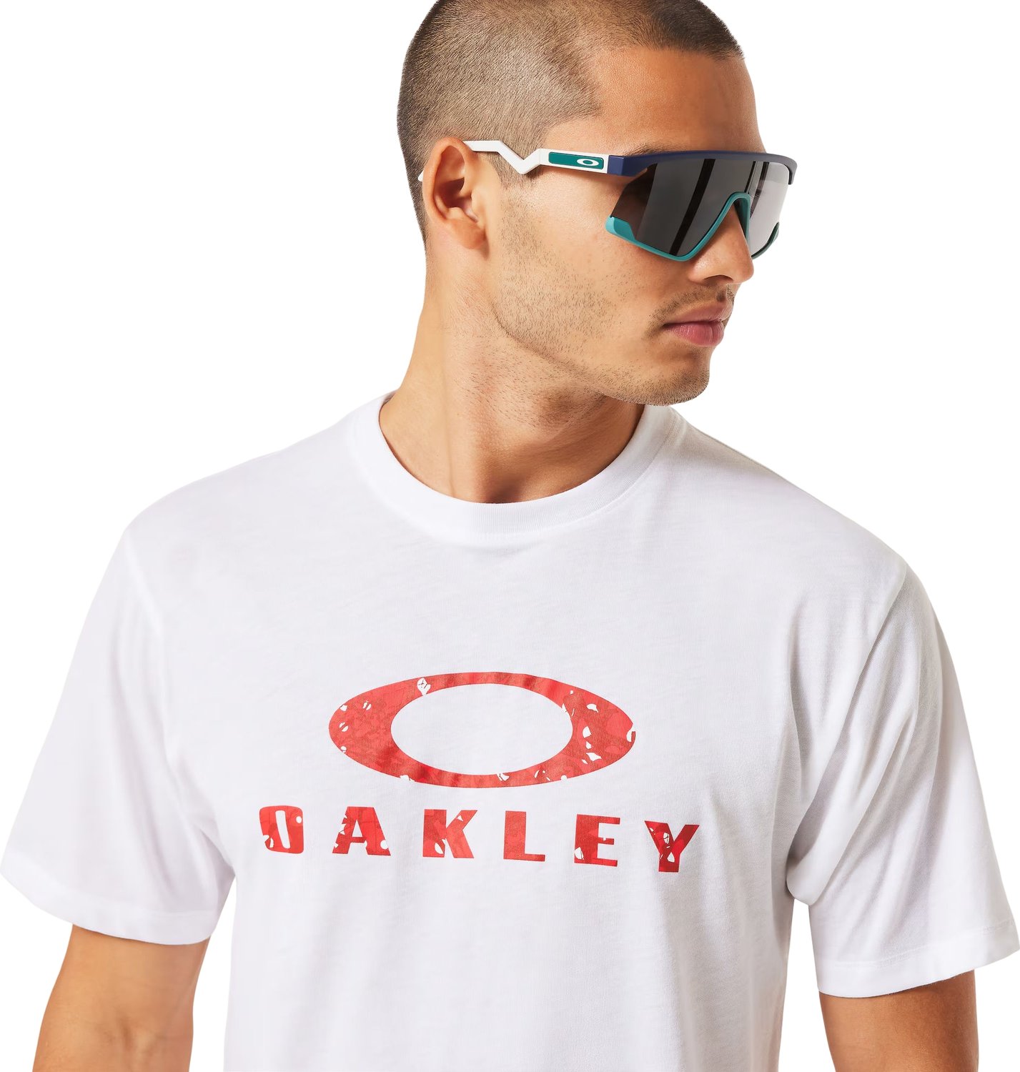 Zastosowanie wysokiej jakości mieszanki poliestru i bawełny gwarantuje, że koszulka jest nie tylko przewiewna, ale także niezwykle trwała. Materiał jest przyjemny w dotyku, co dodatkowo podnosi komfort noszenia przez cały dzień. Klasyczny, okrągły dekolt dodaje koszulce ponadczasowego charakteru, co sprawia, że z łatwością wpasuje się w różnorodne stylizacje. Logo Oakley na przodzie koszulki to wyrazisty akcent, który przyciąga wzrok i podkreśla jej sportowy charakter.