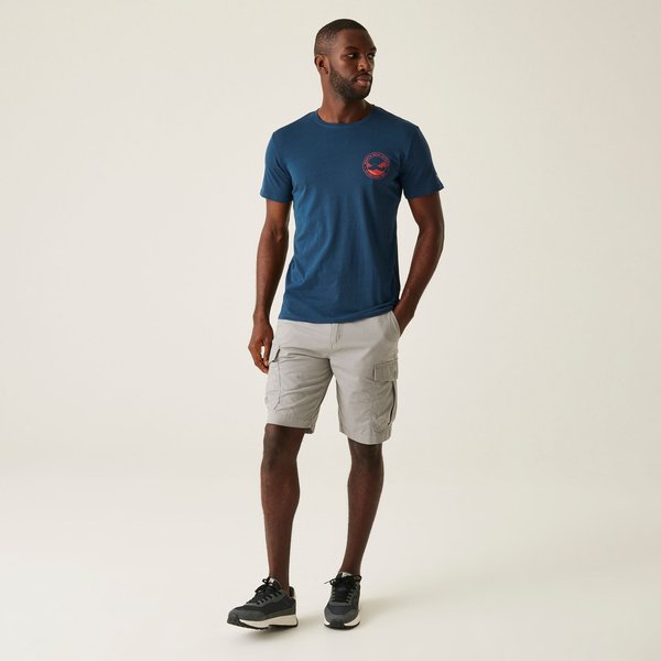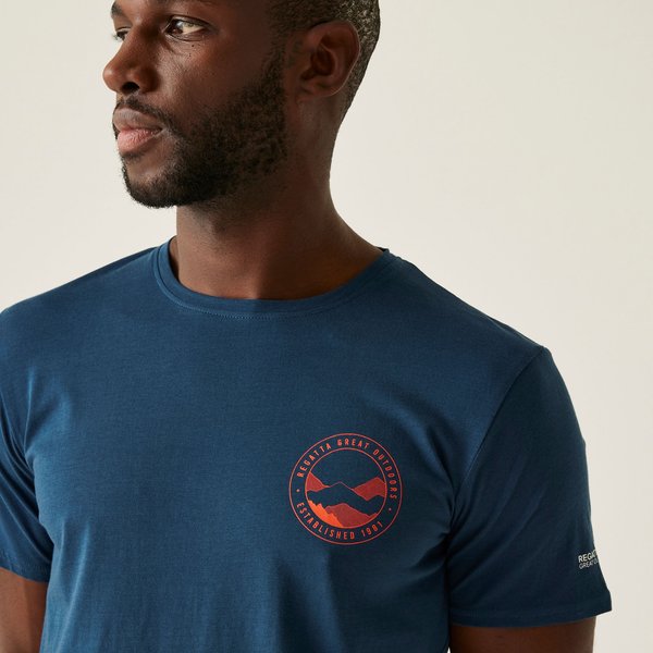 Męska koszulka sportowa Breezed V Regatta to doskonały wybór dla aktywnych mężczyzn ceniących komfort i funkcjonalność. Wykonana z wysokiej jakości 100% bawełny, zapewnia miękkość i wygodę przez cały dzień. Jej krótki rękaw i okrągły dekolt sprawiają, że jest idealną warstwą na treningi i przygody. Koszulka wyróżnia się stylowym nadrukiem graficznym, dodając nowoczesnego charakteru każdej stylizacji. Dzięki ochronie przed promieniowaniem UV (UPF 30+), stanowi świetną opcję na aktywności na świeżym powietrzu.