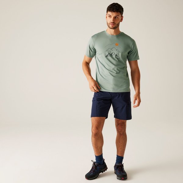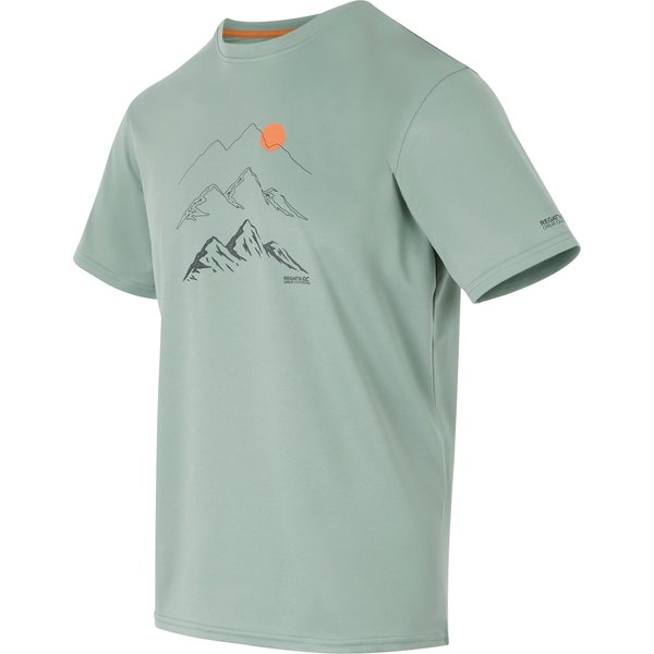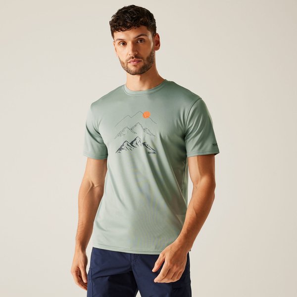 Koszulka męska Fingal IX marki Regatta to niezawodny wybór dla entuzjastów aktywności na świeżym powietrzu, którzy cenią sobie komfort oraz styl. Wykonana z wytrzymałej tkaniny poliestrowej, zapewnia nie tylko doskonałą trwałość, ale również wygodę podczas aktywności. Jej szybkoschnące właściwości oraz zdolność do skutecznego odprowadzania potu gwarantują uczucie świeżości przez cały czas. Stylowy nadruk graficzny oraz wykończenie typu pique dodają nowoczesnego charakteru, a prosty krój z krótkimi rękawami i okrągłym dekoltem sprawia, że koszulka doskonale dopasowuje się do sylwetki, zapewniając pełną swobodę ruchów. To idealne uzupełnienie outdoorowej garderoby.