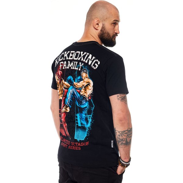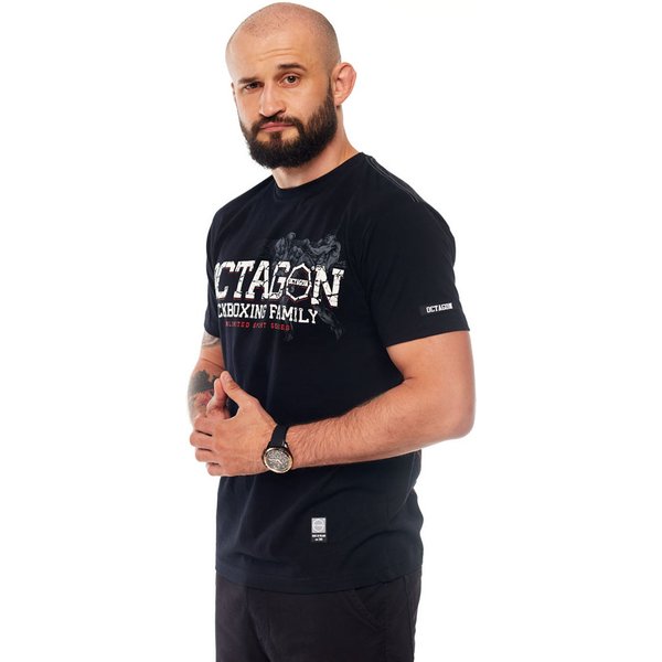Koszulka męska Kickboxing Family Octagon oferuje nie tylko stylowy wygląd, ale również wyjątkowy komfort dzięki wysokiej jakości bawełnie o gramaturze 210 gsm. Materiał zapewnia trwałość i wygodę noszenia, co jest idealne na co dzień oraz podczas treningów. Gumowe elastomery gwarantują lepsze dopasowanie, a żakardowe metki dodają klasy. Krótki rękaw i okrągły dekolt podkreślają sportowy charakter koszulki, jednocześnie zapewniając swobodę ruchów. Dynamiczny nadruk z przodu i z tyłu przyciąga wzrok. Dodatkowe przeszycia na ramionach wzmacniają konstrukcję, czyniąc koszulkę idealnym wyborem dla aktywnych mężczyzn.