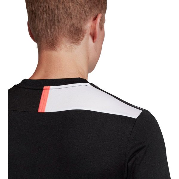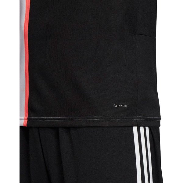 W tej koszulce piłkarskiej zrezygnowano z tradycyjnych pasków na rzecz dzielonego, czarno-białego designu z różowym akcentem, obecnym na koszulkach podstawowych klubu od stuleci. Model uszyto w miękkiego, pochodzącego z recyklingu poliestru, który za sprawą systemu climalite odprowadza pot z powierzchni skóry.