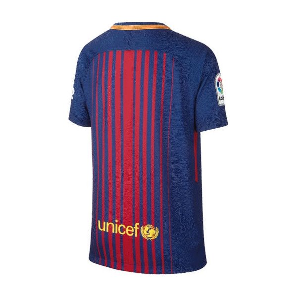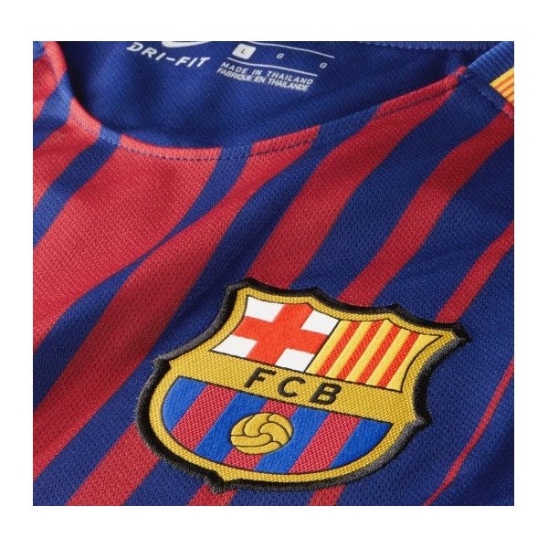 Ten model to replika z emblematami drużyny oraz logo sponsorów, które nadają jej autentyczności. Koszulka wykonana została z lekkiego materiału w technologii Dri-Fit, który odprowadza pot i wilgoć powstały w trakcie wysiłku fizycznego ze skóry, pozostawiając ją suchą i z uczuciem świeżości. W końcu mecz piłki nożnej trwa aż 90 minut! Ale z koszulką FC Barcelona Stadium Home dasz radę! Koszulka posiada elastyczne boczne wstawki ze ściągacza, które zapewnią Ci swobodę ruchów. Taśma umieszczona w wewnętrznej stronie karku zwiększa komfort noszenia. Materiał wykonania jest wytrzymały oraz wysokiej jakości, a do tego przyjemny w dotyku.