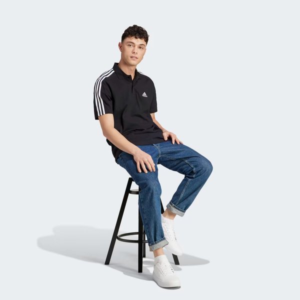 Koszulka męska polo Essentials Pique to idealny wybór na ciepłe dni. Wykonana z miękkiej bawełny, zapewnia komfort noszenia oraz przewiewność. Dzięki efektownym 3 paskom na ramionach oraz haftowanemu małemu logo na piersi, koszulka zyskuje sportowy charakter. Kołnierzyk zapinany na dwa guziki dodaje elegancji, a regularny krój gwarantuje odpowiednie dopasowanie. Boczne rozcięcia u dołu nadają koszulce atrakcyjny wygląd. Produkt wykonany z lepszej jakości bawełny zapewnia trwałość i wygodę noszenia. Koszulka polo Essentials Pique to klasyk marki Adidas, który z pewnością stanie się nieodłącznym elementem Twojej garderoby.