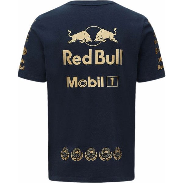 Koszulka męska Racing F1 2022 Constructors Champion Red Bull to doskonały wybór dla fanów sportów motorowych. Ta oryginalna koszulka Red Bull Racing pozwoli Ci wyrazić swoje wsparcie dla zespołu Verstappena i Péreza. Duże logo Red Bull Racing umieszczone na przodzie koszulki przyciągają wzrok, podczas gdy okrągły dekolt i regularny krój zapewniają wygodę noszenia. Dodatkowo, logo zespołu i sponsorów na plecach i rękawach dodają koszulce charakteru. Wykonana z wysokiej jakości bawełny, ta koszulka w kolorze granatowym jest nie tylko stylowa, ale też trwała. Poczuj się jak prawdziwy kibic w tej koszulce!