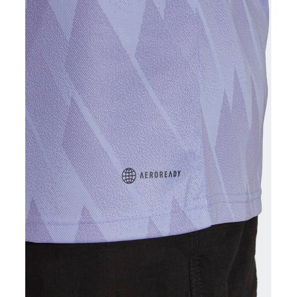 Koszulka posiada standardowy krój, który zapewnia wysoki komfort i swobodę ruchów. Dzięki technologii AEROREADY wilgoć jest skutecznie pochłaniana, a Ty masz zagwarantowaną suchość. Panele z siateczki pod ramionami dodatkowo wspierają wentylację. Zaokrąglony dekolt wykończony ściągaczem oraz mankiety ze ściągaczami zwiększają wygodę noszenia. Model ten inspirowany jest wyjazdowym strojem klubu Real Madryt. Jest doskonały dla wszystkich fanów hiszpańskiej drużyny i pozwoli wyrazić wsparcie dla drużyny zarówno na trybunach, jak i podczas gry na boisku. Koszulka wykonana została z materiału pochodzącego z recyklingu.