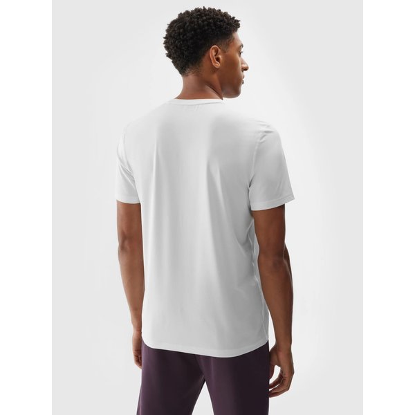Koszulka treningowa od 4F to doskonały wybór dla każdego mężczyzny aktywnego fizycznie. Dzięki szybkoschnącym, elastycznym materiałom, zapewnia maksymalny komfort i wsparcie podczas treningów o różnej intensywności. Jej wygodny krój regular oraz gładka struktura po obu stronach umożliwiają pełną swobodę ruchów, co pozwala na skupienie się wyłącznie na ćwiczeniach. Krótki rękaw i okrągły dekolt dodają klasycznego wyglądu, a dopasowany krój idealnie przylega do sylwetki, nie krępując ruchów. Dodatkowym atutem jest logo na lewej piersi, podkreślające sportowy charakter koszulki.