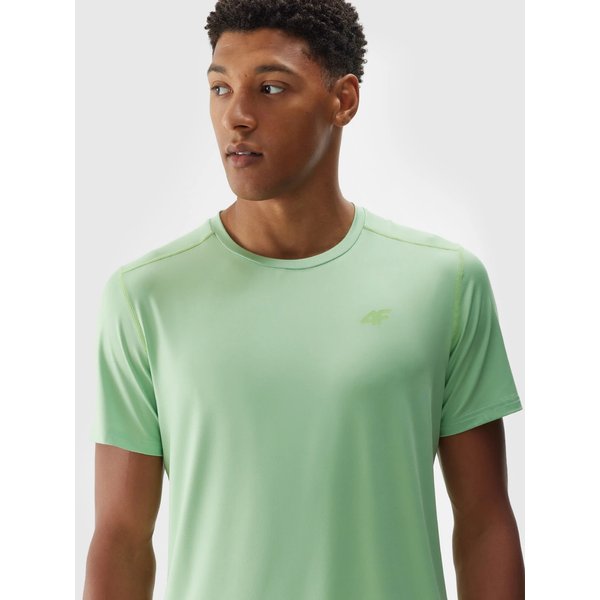 Koszulka męska od marki 4F to idealne rozwiązanie dla każdego, kto ceni komfort i wsparcie podczas treningu. Dzięki szybkoschnącym, elastycznym materiałom, użytkownik może cieszyć się pełną swobodą ruchów, co pozwala na maksymalne skupienie na ćwiczeniach. Miękki i wytrzymały splot interlock sprawia, że koszulka świetnie układa się na ciele i efektywnie chłonie wilgoć. Regularny krój oraz standardowa długość umożliwiają wygodne dopasowanie do sylwetki. Dodatkowym atutem jest gładka struktura materiału, co podkreśla sportowy charakter odzieży. Koszulka posiada krótki rękaw, okrągły dekolt oraz logo na lewej piersi.