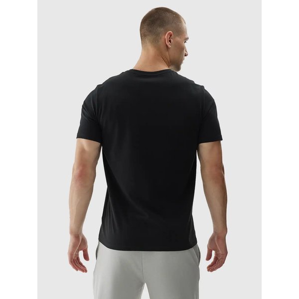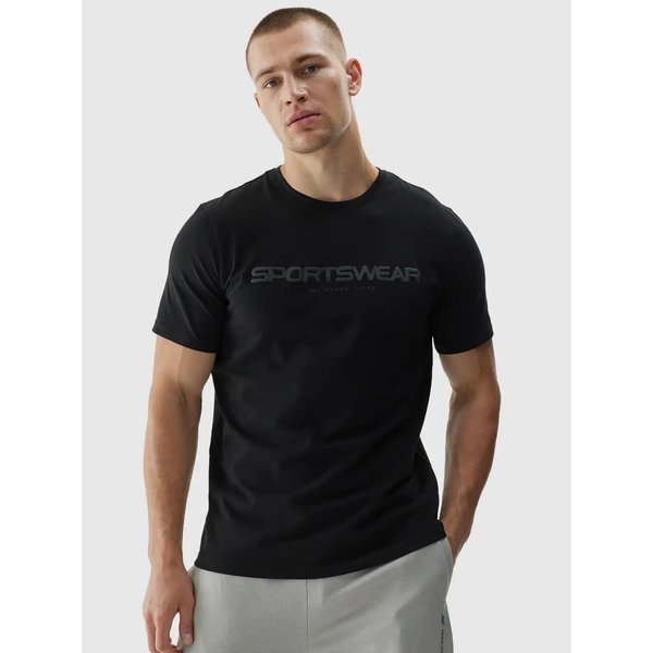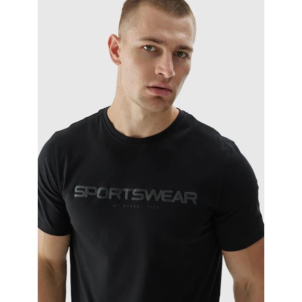 Koszulka męska marki 4F to doskonały wybór na co dzień, zarówno do casualowych, jak i sportowych stylizacji. Jej wygodny, regularny krój dopasowuje się do sylwetki, zapewniając komfort noszenia. Standardowa długość sięgająca do linii bioder sprawia, że idealnie komponuje się z różnymi elementami garderoby. Wykonana ze splotu single jersey, koszulka charakteryzuje się gładką powierzchnią, co podnosi jej elastyczność i wygodę. Krótki rękaw i okrągły dekolt dodają uniwersalności, a napisy "Sportswear" na przodzie nadaje jej nowoczesnego wyglądu. Brak kieszeni, zamków i guzików oraz starannie wykonane szwy na ramionach i bokach podkreślają minimalistyczny design.