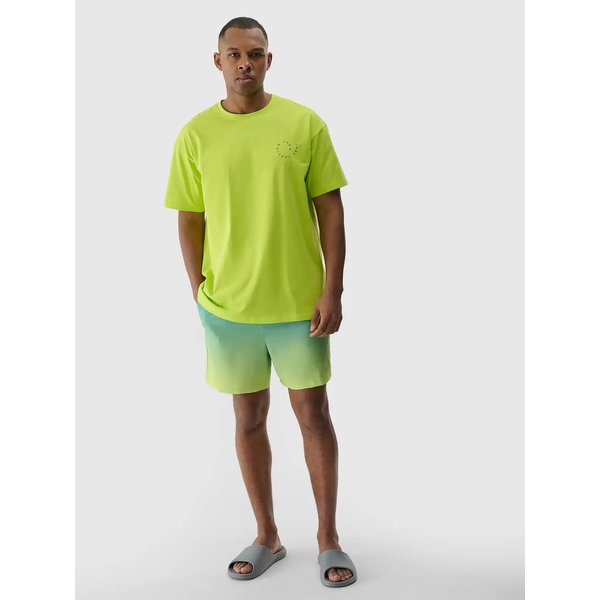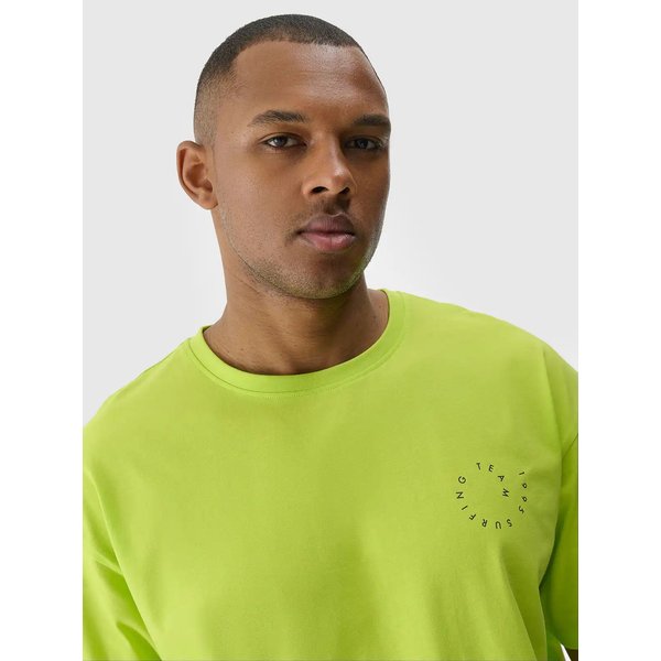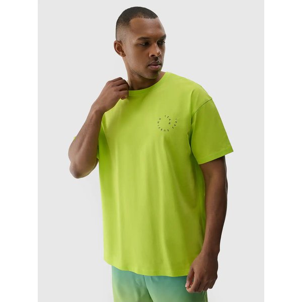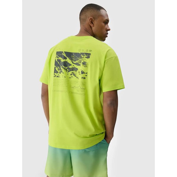 Męska koszulka marki 4F to doskonałe połączenie komfortu i stylu, idealna zarówno na co dzień, jak i do sportowych stylizacji. Dzięki oversizowemu krojowi, luźno układa się na sylwetce, zapewniając maksymalną swobodę ruchów. Elastyczny splot single jersey gwarantuje, że koszulka jest niezwykle wygodna w noszeniu, a gramatura 180 gsm sprawia, że materiał nie prześwituje i jest miękki w dotyku. Wykonana w 100% z bawełny, zapewnia trwałość i przyjemność noszenia przez cały rok. Okrągły dekolt z lekkim ribowaniem oraz obniżone rękawy dodają nowoczesnego charakteru, a efektowne nadruki podkreślają jej unikalny styl.