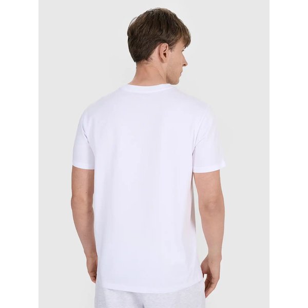 Męska koszulka bawełniana 4F to idealne połączenie stylu i funkcjonalności, stworzona z myślą o komforcie codziennego noszenia. Dzięki regularnemu krojowi oraz elastycznemu materiałowi, koszulka doskonale dopasowuje się do sylwetki, zapewniając swobodę ruchów w każdej sytuacji. Jej gładka faktura i gramatura 180 gsm sprawiają, że materiał nie prześwituje i zachowuje swój kształt. Miękki, 100% bawełniany splot zapewnia przyjemne uczucie na skórze, a okrągły dekolt dodaje nowoczesnego akcentu. Wyraźny nadruk na przodzie podkreśla indywidualny charakter każdej stylizacji.