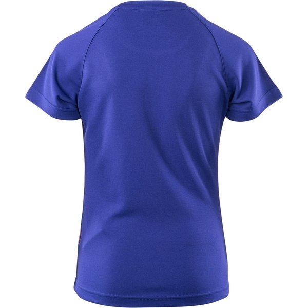 Lekki t-shirt został wykonany z przyjemnego w dotyku poliester. Niesamowicie wytrzymały materiał nie naciąga się, ani nie traci swojego koloru, nawet przy częstym noszeniu i praniu. Dzięki swoim szybkoschnący właściwościom świetnie sprawdza się podczas uprawiania sportu, na przykład podczas zajęć wychowania fizycznego. Standardowy krój z okrągłym dekoltem jest bardzo wygodny, dobrze układa się na ciele i nie ogranicza swobody ruchu. Uniwersalna koszulka sprawdzi się w każdej codziennej, luźnej stylizacji.