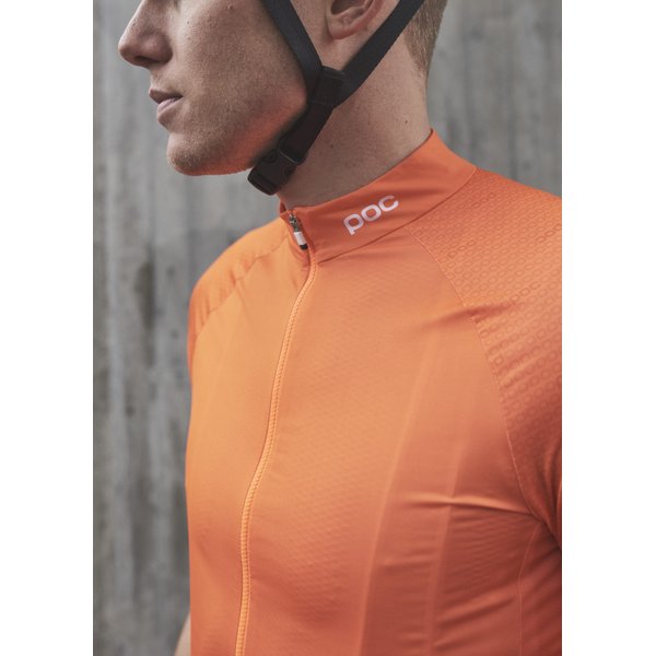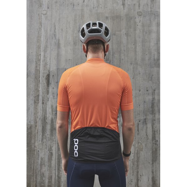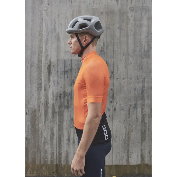 Ta koszulka spełnia standard Global Recycled, co gwarantuje jego wysoką jakość. Podkładki siateczkowe pod pachami poprawiają wentylację, dzięki czemu poczujesz się komfortowo przez długi czas. Koszulka ma również trzy duże kieszenie z tyłu, które pozwalają na łatwe dostanie się do niezbędnych rzeczy, a także kieszeń na zamek błyskawiczny na telefon lub inne cenne przedmioty. Zamek błyskawiczny na całej długości koszulki zapewnia swobodę i elastyczność w regulacji wentylacji podczas jazdy. Miękki kołnierz zwiększa komfort noszenia. Koszulka jest wąska i zaprojektowana tak, aby perfekcyjnie przylegać do ciała, pozwalając na agresywną pozycję podczas jazdy. Elastyczny ściągacz z nadrukowanym silikonem utrzymuje koszulkę w miejscu, zapewniając bezpieczne i wygodne dopasowanie. Konstrukcja z krótkim rękawem sprawdzi się podczas aktywności w upalne dni. Logo marki umieszczone na kołnierzu oraz z tyłu podkreśli wysoką jakość. Koszulka Essential Road Jersey marki POC to idealny wybór dla wymagającego kolarza.