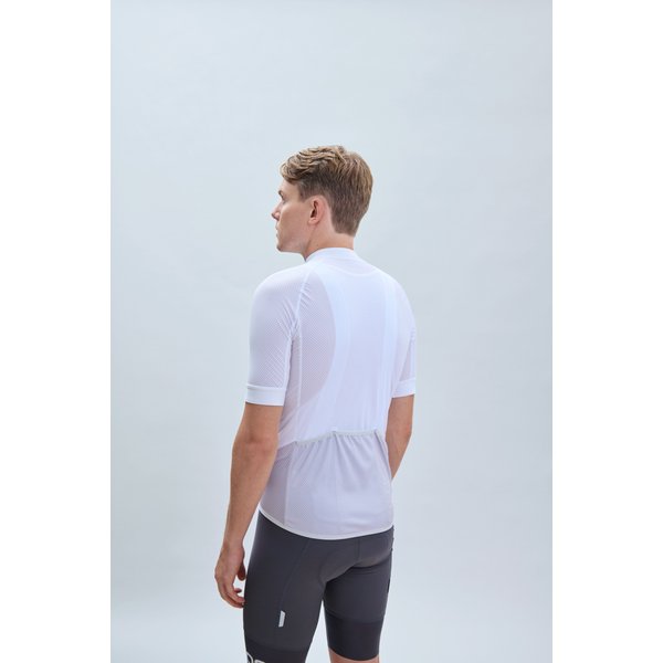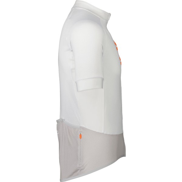 Koszulka wykonana jest z lekkiego i przewiewnego materiału, który doskonale odprowadza wilgoć podczas jazdy w upalne dni. Struktura materiału zapewnia lekkość i elastyczność, co pozwala na pełną swobodę ruchów podczas jazdy. Koszulka wyposażona jest w trzy duże kieszenie z tyłu, idealne na wszystkie niezbędne akcesoria, a także kieszeń na zamek błyskawiczny na telefon lub inne cenne przedmioty. Miękki kołnierz zapewnia wygodę wokół szyi, a pełnowymiarowy zamek błyskawiczny daje możliwość regulacji wentylacji. Koszulka zaprojektowana jest w taki sposób, aby idealnie dopasowywać się do ciała, co pozwala na wygodne pozycjonowanie w trakcie jazdy. Elastyczny ściągacz na dole koszulki zapewnia jej pewne utrzymanie na miejscu, co zapewni dodatkowy komfort. Materiał koszulki jest w 100% wykonany z recyklingowanego poliestru, co czyni ją przyjazną dla środowiska. Duże logo marki umieszczone na froncie podkreśli wysoką jakość koszulki. Waży tylko 130 gramów, co pozwala na komfortową jazdę przez długi czas. Koszulka Essential Road Logo Jersey marki POC to idealny wybór dla wymagającego kolarza.