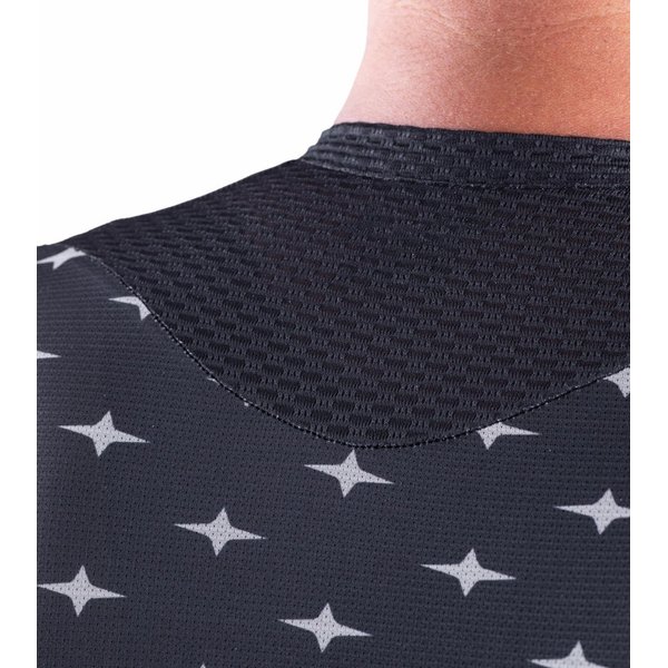 | ODDYCHALNOŚĆ | Model Jersey Stars od marki ALE został wykonany z materiałów, które oferują wysoki poziom oddychalności. Koszulka umożliwia odprowadzenie wilgoci na zewnątrz i gwarantuje komfortowe uczucie suchości i świeżości. |