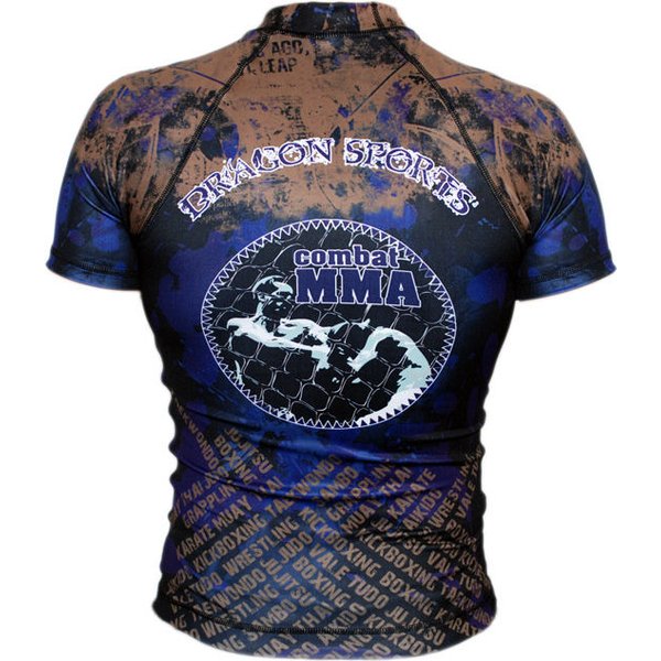 Rashguard zaprojektowany specjalnie na potrzeby zawodników MMA. Nieścieralne wydruki z charakterystycznym logo firmy. Cztero-panelowa konstrukcja zapewnia wygodę i wytrzymałość. Elastyczne szwy nie krępują ruchów świetnie sprawdzając się w treningach.