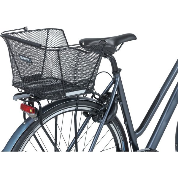 Tylny koszyk rowerowy Basil Lesto to stylowy czarny kosz montowany na bagażnik. Kosz jest wykonany ze stali o drobnych oczkach i jest bardzo przydatny podczas zakupów, ale można również łatwo umieścić w nim torebkę lub inne akcesoria. W koszu znajduje się specjalnie wyprofilowana wnęka na siodełko rowerowe. Można go łatwo wyjąć i ma miękki uchwyt, dzięki temu wygodnie się go nosi. Z odblaskami po obu stronach kosz rowerowy sprawia, że jesteś bardziej widoczny na drodze w ciemności.