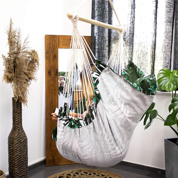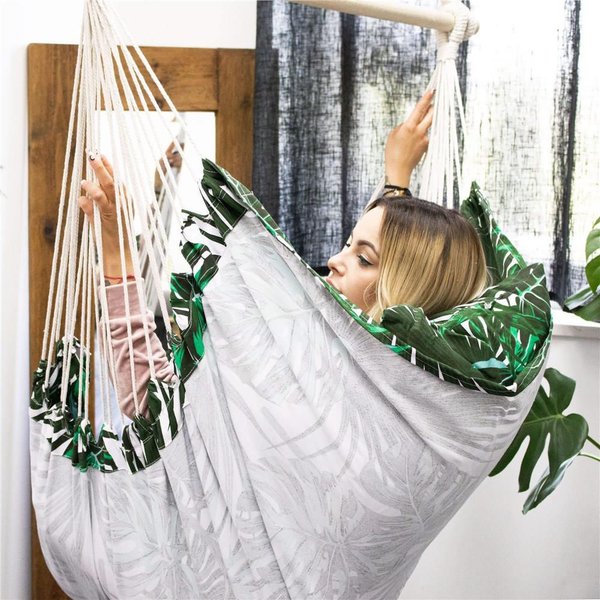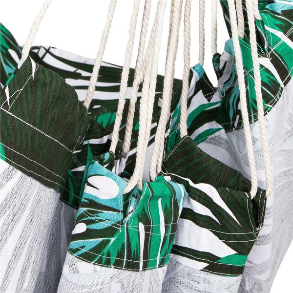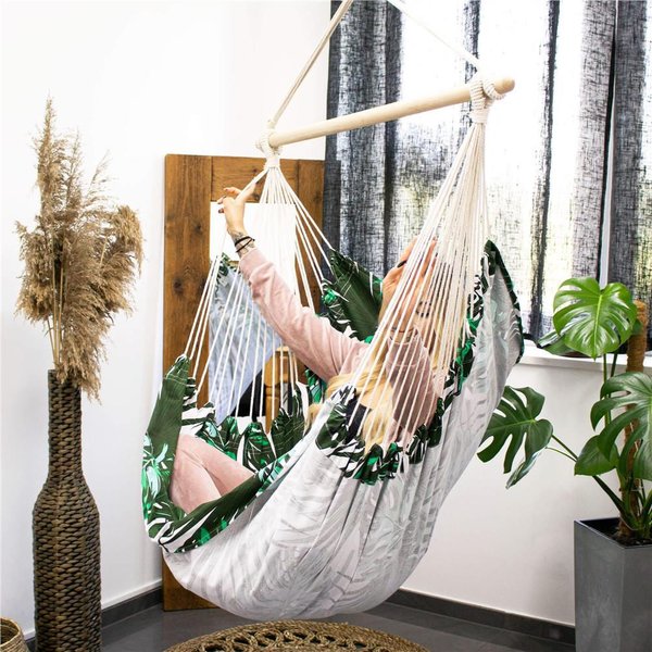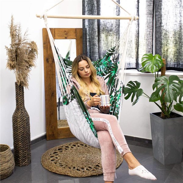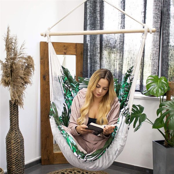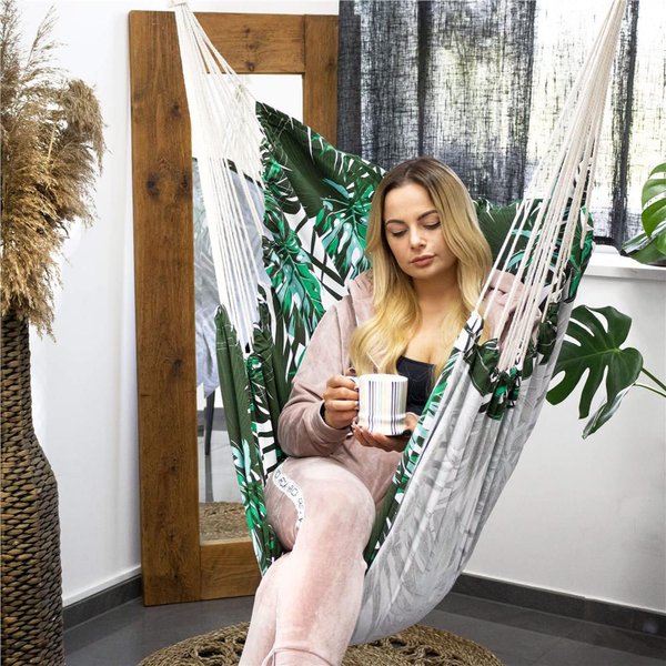 Krzesło brazylijskie Springos to idealny wybór dla osób ceniących sobie komfort i staranność wykonania. Hamak marki Springos z poduszkami zapewnia maksymalną przepuszczalność powietrza, a szeroki i wytrzymały materiał wraz z podłokietnikami sprawiają, że wypoczynek na świeżym powietrzu staje się pełnym relaksem. Można go zabrać ze sobą dosłownie wszędzie, dzięki pętlom do zawieszenia. Hamak w liście posiada wiele zastosowań, od relaksu z książką po czas spędzony z rodziną. Maksymalna waga użytkowania wynosi 150 kg. W zestawie znajdują się 2 poduszki.