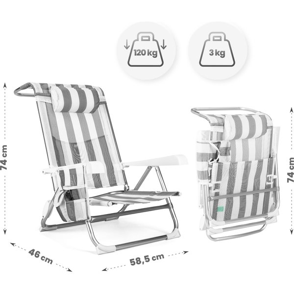 - Wszechstronność: Sprawdza się jako klasyczne krzesło i wygodny leżak, idealne na plażę, do ogrodu czy na kemping.