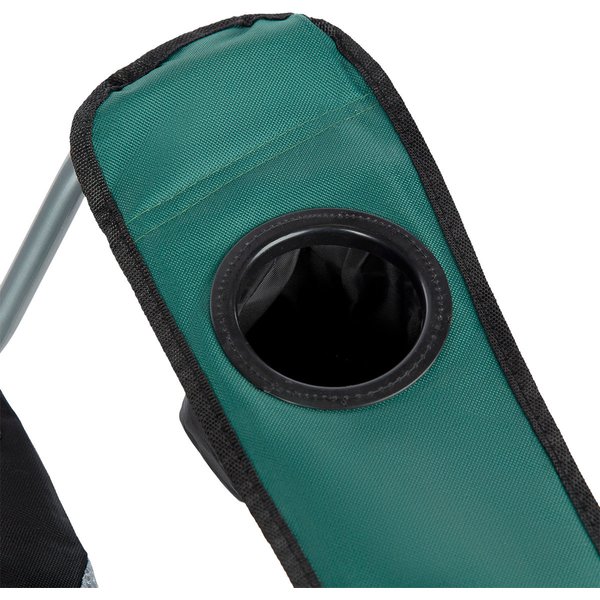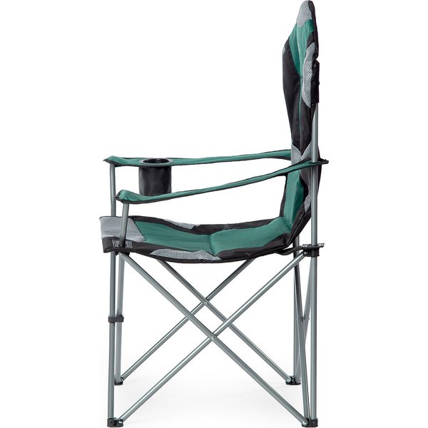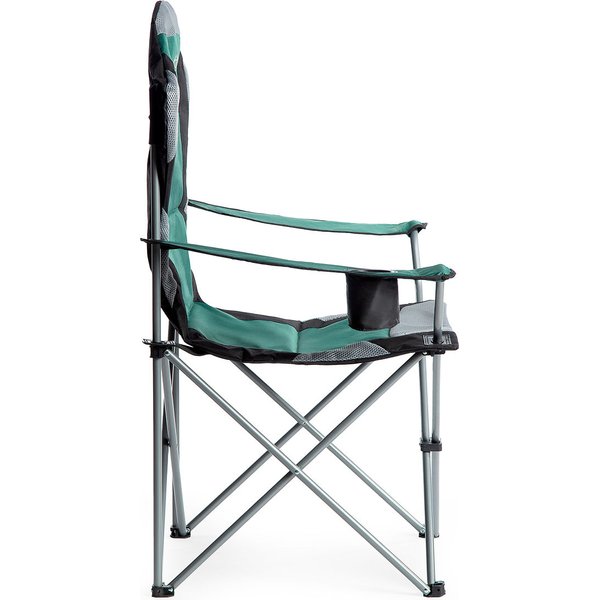 Konstrukcja z funkcją składania, sprawdza sie jako bagaż idealny do samochodu, nie zajmując wiele miejsca. Posiada stabilne nogi, podłokietniki oraz wsparcie dla pleców zapewniające komfort wypoczynku. Siedzisko krzesła wykonane zostało z wytrzymałego, 2-warstwowego materiału który wytrzymuje obciążenie nawet do 130 kg. W podłokietniku przygotowano specjalne miejsce na kubek, byś mógł mieć swój ulubiony napój zawsze będzie pod ręką.