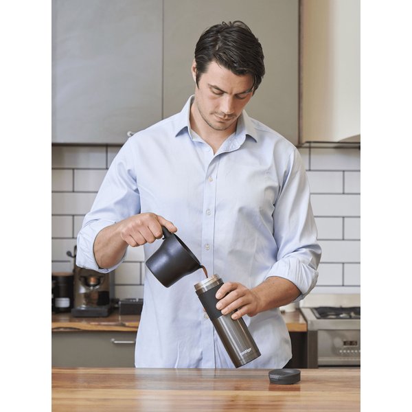 To dlatego, że ma podwójnie izolowane próżniowe ścianki, dzięki którym temperatura płynu utrzymuje się przez wiele godzin - czy to gorąca kawa, czy mrożona herbata. Jest to też zasługą wyjątkowego systemu Snapseal, który gwarantuje idealną izolację termiczną i hermetyczne zamknięcie. Użycie kubka jest też wygodne - gumowa opaska nie ślizga się w dłoni i nie oddaje temperatury płynu, więc oparzenia czy przeraźliwe zimno na Twojej skórze po prostu nie wchodzą w grę. Równie komfortowa jest obsługa za pomocą jednej ręki. Raz-dwa i... pijesz.
