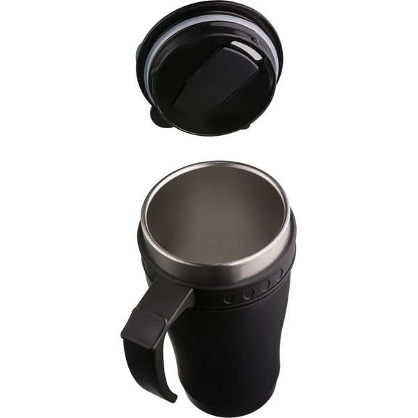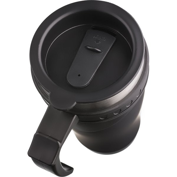 Kubek Inox posiada ergonomiczny uchwyt oraz praktyczną pokrywkę, która chroni przed wylaniem płynów. Dzięki antypoślizgowej fakturze i konstrukcji, która zapobiega przekazywaniu niskiej i wysokiej temperatury do zewnętrznej ściany kubka, masz zapewniony pewny i bezpieczny chwyt bez obaw o oparzenia.