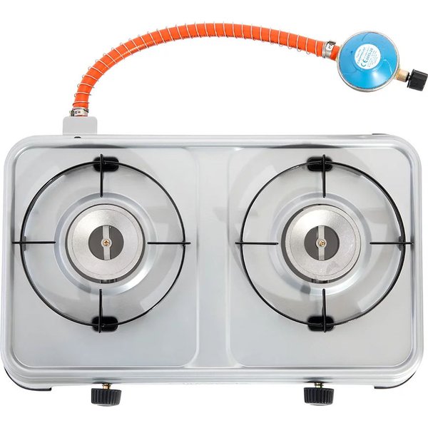 Niezależnie od tego, gdzie się znajdziesz, ten model pozwoli przyrządzić Ci ciepły i syty posiłek. Posiada dwa palniki, a także pokrętła, które pozwolą Ci regulować przepływ gazu i decydować o szybkości podgrzewania. Kuchenka jest stabilna, dzięki stopkom zakończonym gumami, które nie pozwalają na zsuwanie, czy upadek. Właściwości antypoślizgowe pozwolą na swobodne gotowanie, bez obawy o niestabilność. Wykonana została z wytrzymałych i solidnych materiałów, jest trwała - posłuży Ci długo nawet przy trudnych i wymagających warunkach. Jej wysoką jakość dostrzeżesz już na samym początku użytkowania, nie będziesz chciał z niej zrezygnować. Nie powinno zabraknąć jej w Twoim wyposażeniu!