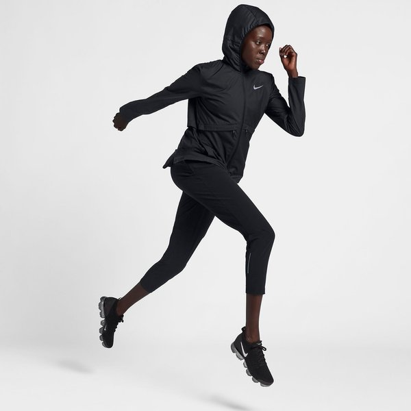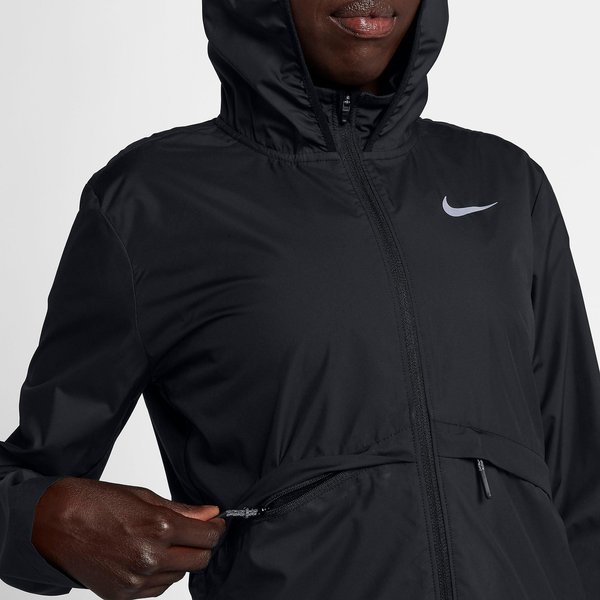 Elastyczne wykończenie kurtki sprawia, że kaptur utrzymuje się na miejscu, a przedłużony tył zapewnia świetną osłonę. Odblaskowe znakowanie sprawia, że będziesz widoczna dla innych, gdy na jogging wybierzesz się już po zmroku. Essential wyposażona została w boczne kieszenie zabezpieczone zamkami, w których pomieścisz wszystko co potrzebne biegaczowi.