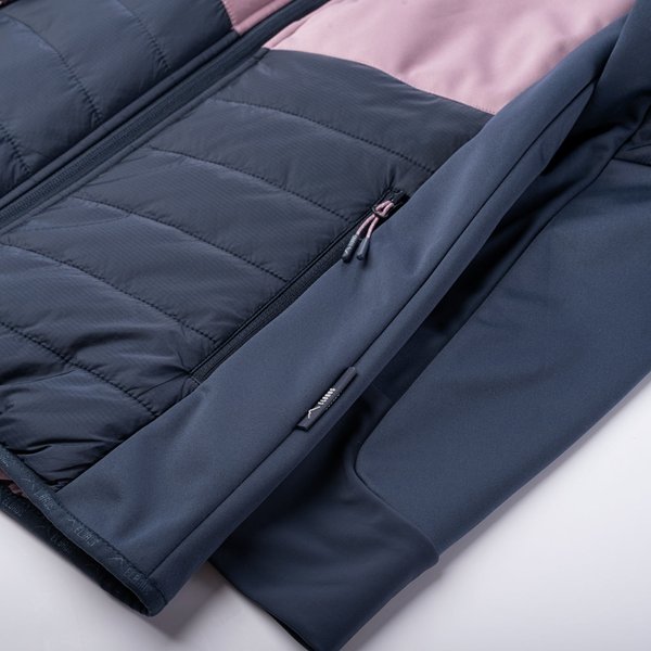 Damska kurtka hybrydowa Everton Wo’s powstała z połączenia kurtki pikowanej z elementami softshellowymi. Elastyczne panele na rękawach i bokach kurtki zapewniają pełen zakres ruchów podczas wędrówki czy innych aktywności sportowych oraz wspomagają transport wilgoci na zewnątrz. Ocieplina syntetyczna użyta na froncie i plecach kurtki oraz na zewnętrznej części rękawa podnosi komfort cieplny w chłodniejsze dni. Model ten został pokryty powłoką DWR, czyli zewnętrzną impregnacją podnoszącą wodoodporność tkaniny. Kurtka ta posiada dwie boczne kieszenie zapinane na zamek oraz małą kieszonkę na klatce piersiowej. Zintegrowany kaptur ochroni przed powiewami wiatru.