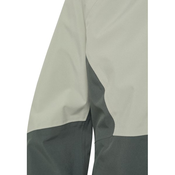 Kurtka zewnętrzna wykonana jest z materiału Texapore Core 2L, który charakteryzuje się wyjątkowymi właściwościami wodoodpornymi i wiatroszczelnymi. Materiał ten skutecznie chroni przed deszczem i wiatrem, jednocześnie umożliwiając skórze oddychanie, co jest nieocenione podczas intensywnych aktywności na świeżym powietrzu. Wewnętrzna kurtka posiada hybrydową konstrukcję, która dodatkowo zwiększa ocieplenie górnej części ciała, zapewniając komfort termiczny nawet podczas niskich temperatur. Regulowany kaptur, który jest na stałe połączony z kurtką, stanowi dodatkową ochronę przed niesprzyjającymi warunkami atmosferycznymi. Możliwość regulacji obwodu u dołu kurtki oraz zastosowanie ściągaczy pozwala na idealne dopasowanie, co zwiększa komfort noszenia. Dwie boczne kieszenie zapinane na zamek błyskawiczny są nie tylko praktyczne, ale także zabezpieczają przechowywane w nich przedmioty przed wilgocią.