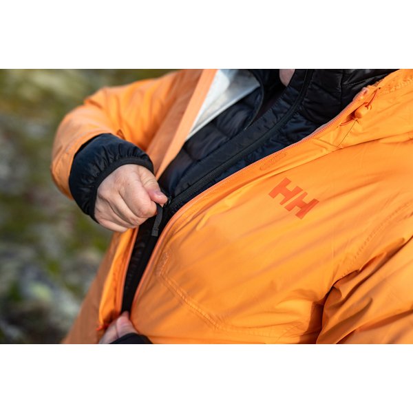 Dla dodatkowej wygody Loke 2.0 wyposażono w dwie kieszenie na ręce, które zabezpieczone zamkami, stanowią idealne miejsce na przechowywanie drobiazgów. Ekologiczne podejście marki Helly Hansen znajduje odzwierciedlenie w wykorzystaniu materiałów z recyklingu oraz w zastosowaniu technologii DWR bez PFC, co przyczynia się do ochrony środowiska. Główny materiał bluesign® to gwarancja, że produkt jest przyjazny dla środowiska i spełnia najwyższe standardy jakości. Dodatkowym elementem bezpieczeństwa jest zastosowanie systemu RECCO, który może okazać się nieoceniony w sytuacjach awaryjnych. Estetyczna prostota i funkcjonalność idą tu w parze z nowoczesnym designem. Logo HH umieszczone na piersi dodaje całości klasy, a zewnętrzna pętla do zawieszania ułatwia przechowywanie.