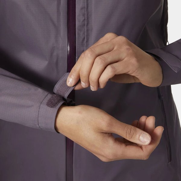 Komfort użytkowania zwiększa wiele regulacji dostępnych w tej kurtce. Kaptur, mankiety i dół są w pełni regulowane, co pozwala na idealne dopasowanie do sylwetki użytkowniczki oraz intensywności warunków pogodowych. Dzięki temu kurtka świetnie chroni przed wiatrem, jednocześnie nie ograniczając swobody ruchów. Praktyczność Loke Terra Jacket podkreślają liczne kieszenie zapinane na zamek, które pozwalają na przechowywanie niezbędnych drobiazgów. Kieszeń na piersi oraz dwie kieszenie boczne zapewniają łatwy dostęp do najważniejszych rzeczy, takich jak telefon czy mapy, bez konieczności zdejmowania plecaka.