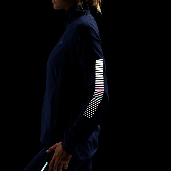 Ta techniczna warstwa wierzchnia ma regularny krój z wodoszczelnym wykończeniem wolnym od szkodliwego PFC. Możesz więc biec w tym samym tempie nawet gdy na niebie pojawią się ciemne chmury zwiastujące deszcz. Kurtka posiada wentylowane plecy zapobiegające przepoceniu i przegrzaniu. Lekko dłuższy tył oraz stawiany kołnierz to rozwiązania mające zapewnić jak najlepszą ochronę przed chłodem. Odblaskowe elementy w strategicznych miejscach zapewniają odblaskowość 360°.