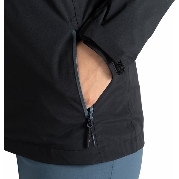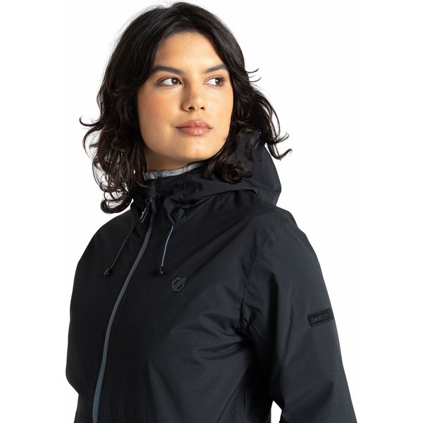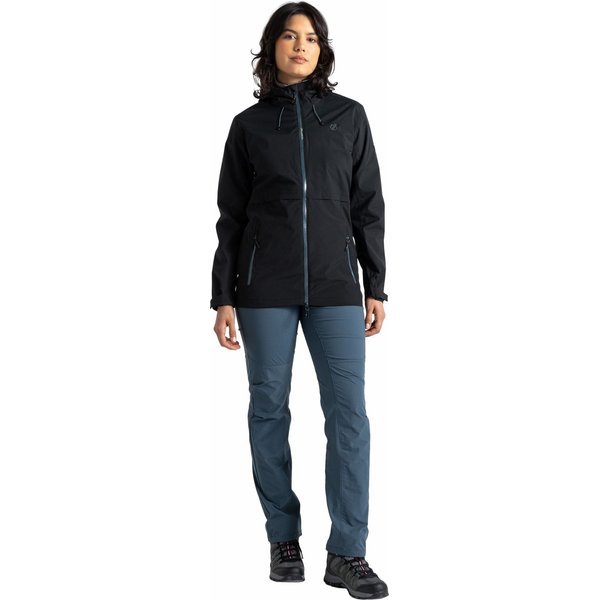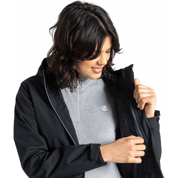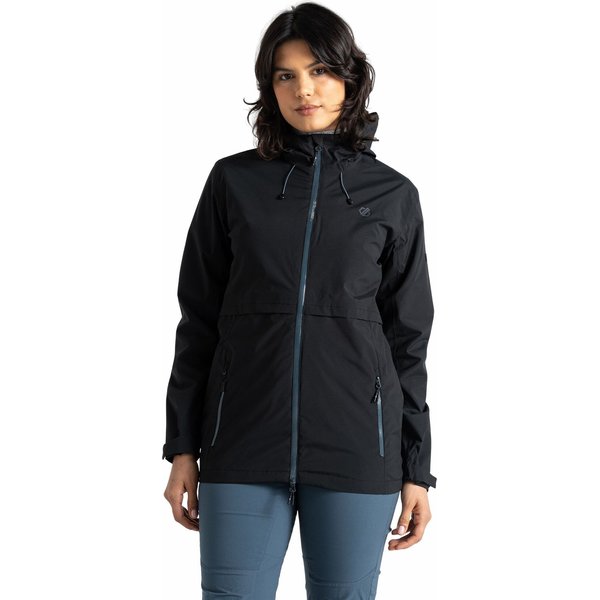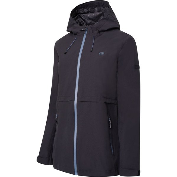 Kurtka damska Switch Up Dare2B została wykonana z elastycznego, wodoodpornego materiału wykonanego z recyklingu - Ared 20/30. Kurtka jest wykończona trwałym impregnowanym wykończeniem, a także posiada uszczelnione szwy, zapewniające kompletną ochronę przed deszczem. Posiada również techniczny kaptur z regulacją, który zapewnia dodatkową ochronę. Dzięki wodoodpornemu zamkowi błyskawicznemu z kanałem odprowadzającym wodę oraz osłoną na brodę, zapewnia długotrwałe suche uczucie. Kurtka ma 2 boczne kieszenie na zamek błyskawiczny, regulowane mankiety i dolny brzeg oraz jedną wewnętrzną kieszeń na zamek błyskawiczny.