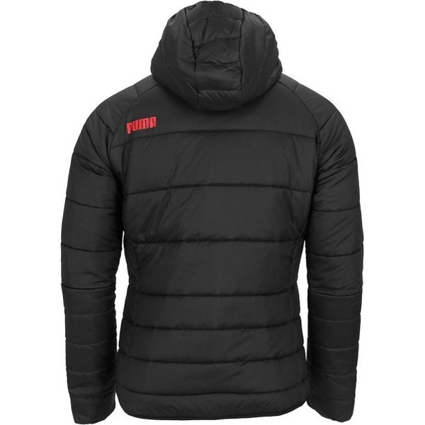 Jesteś fanem AC Milan i szukasz kurtki na zimę? Ten model jest dla Ciebie! Wybierz kurtkę męską zimową AC Milan Puma i noś ją z dumą! Kurtka została wykonana z wysokiej jakości materiału, która zapewni Ci skuteczną ochronę przed zimnem. Wysoki kołnierz oraz kaptur ochronią Cię przed deszczem i wiatrem. Elastyczny dół kurtki zapobiega dostaniu się do środka chłodnego wiatru. Kurtka posiada lekkie wcięcie w talii, dlatego dobrze podkreśla sylwetkę. Konstrukcja zapinana jest na zamek, z patką chroniącą podbródek. Materiałowa listwa pod zamkiem zapobiega dostaniu się do środka zimna. Z przodu znajduje się nadruk Puma oraz ACM 1899.