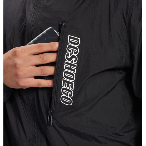 Model jest częścią DC RE/SOLVE Sustainability Program, co wskazuje na zrównoważony proces produkcji. Gładka tkanina została w całości pozyskana z recyklingu i jest pozbawiona szkodliwych związków PFC. Materiał chroni przed wilgocią i wiatrem, więc kurtka świetnie sprawdzi się przy zmiennej jesiennej pogodzie. Krój tailored fit z elastycznymi mankietami jest wygodny, nie ogranicza swobody ruchu. Kurtka z zamkiem błyskawicznym na całej długości dopasowuje się do sylwetki i dobrze układa się na ciele. Zintegrowany kaptur dodatkowo chroni przed zimnem i deszczem. Kieszenie boczne i frontowa umożliwiają szybki i łatwy dostęp do niezbędnych drobiazgów. Uniwersalny design sprawdzi się w zestawieniu z każdą luźną stylizacją.
