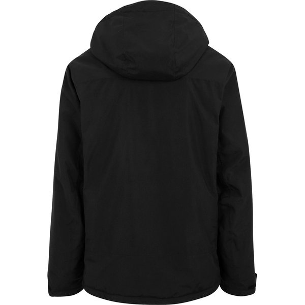 Praktyczność kurtki Frelton przejawia się także w jej dobrze przemyślanym kroju i funkcjonalnych detalach. Zintegrowany kaptur ze ściągaczem oraz regulowane mankiety na rzep umożliwiają idealne dopasowanie do sylwetki i dodatkową ochronę przed wiatrem. Zamek błyskawiczny na środku z przodu, wyposażony w kanał odprowadzający wodę, to gwarancja, że wnętrze kurtki pozostanie suche. Dwie dolne kieszenie zapinane na zamek oraz wewnętrzna kieszonka bezpieczeństwa zapewniają miejsce na niezbędne drobiazgi, które warto mieć zawsze pod ręką. Dodatkowo, wyściełane, pikowane panele podszewkowe dodają komfortu noszenia, czyniąc kurtkę nie tylko praktyczną, ale także przyjemną w użytkowaniu. Regulowany dół za pomocą sznurka oraz prosty krój do bioder, zakończony delikatnym logo na piersi i naszywką na rękawie, sprawiają, że kurtka Frelton nie tylko doskonale spełnia swoje funkcje, ale również prezentuje się stylowo.