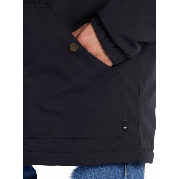 Kurtka męska parka Final Call Quiksilver to idealne rozwiązanie na chłodne dni. Wykonana z wysokiej jakości poliestru, zapewnia trwałość i ochronę przed deszczem. Regularny krój i kaptur z trzema panelami dodają stylu. Rękawy raglanowe zapewniają większą swobodę ruchów. Kurtka posiada praktyczne kieszenie na zatrzaski, a zamek błyskawiczny na froncie umożliwia łatwe zapięcie. Wyściełany kaptur i podszewka z polaru zapewniają ciepło i komfort. Kurtka ma także elastyczne wiązanie na kapturze i haftowane logo na piersi. Wykonana w 100% z przetworzonego poliestru, wpisuje się w ideę ekologii.