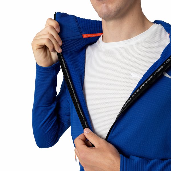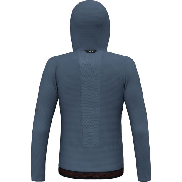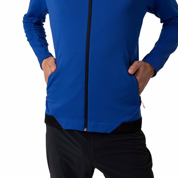 Kurtka posiada hybrydowąkonstrukcję body mapping, łączy 156-gramowy polar Polarlite ze strategicznie umieszczonymi, dziurkowanymi wstawkami z tkaniny softshell. Konstrukcja z siatki oferuje zwiększone ciepło i oddychalność dzięki otwartym kanałom powietrznym, jednocześnie zmniejszając masę tkaniny. Z dwiema zapinanymi na zamek kieszeniami bocznymi, odblaskowymi detalami, dopasowanym kapturem i charakterystycznym obszyciem z elastycznej siatki.