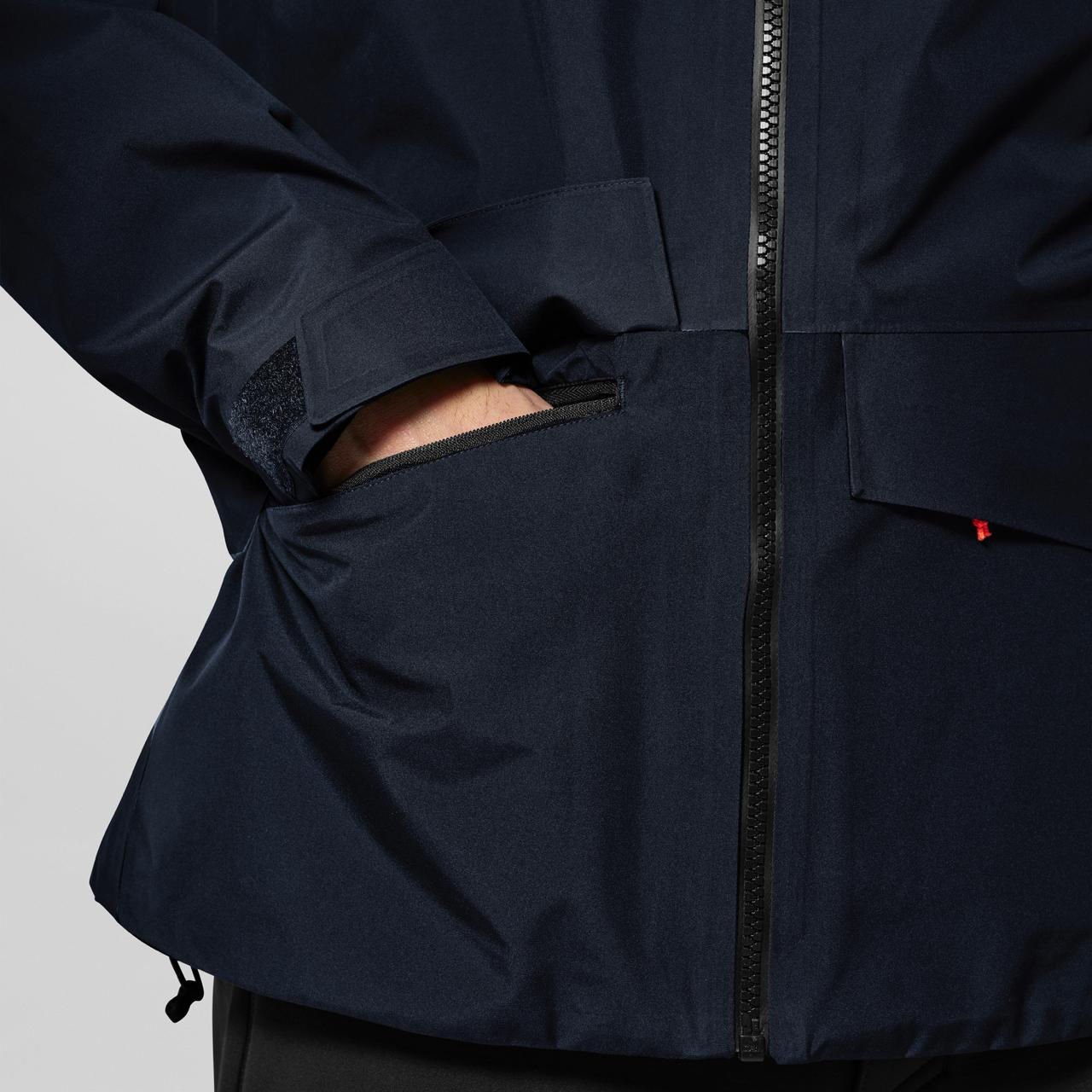 Kluczową cechą kurtki jest również funkcjonalność wyrażająca się w licznych praktycznych rozwiązaniach. Wentylacyjne zamki pod pachami pozwalają na dodatkową regulację temperatury ciała, co jest szczególnie przydatne podczas intensywnych aktywności. Laminowane mankiety z regulacją na rzepy umożliwiają dokładne dopasowanie, zapobiegając dostawaniu się zimnego powietrza do środka. Dwie przednie kieszenie cargo zapinane na zamek oraz wewnętrzna kieszeń na piersi to praktyczne rozwiązania, które umożliwiają bezpieczne przechowywanie niezbędnych drobiazgów.