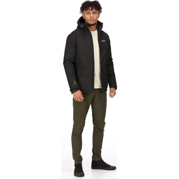Kurtka męska Thornridge II Regatta sprawi, że szare niebo i niskie temperatury na zewnątrz nie będą już przeszkodą do wyjścia z domu. Kurtka wykonana z miękkiej tkaniny zapewnia doskonałą ochronę przed wiatrem i opadami. Podklejone szwy oraz trwała impregnacja zewnętrzna zapobiegną przemoczeniu i sprawią, że żadna pogoda nie będzie przeszkodą. Za komfort cieplny odpowiada izolacja Thermoguard. Model ten sięga do połowy uda, dzięki czemu zapewnia on jeszcze lepszą ochronę przed zimnem. Kurtka wyposażona została w obszerny kaptur z regulacją, który ochroni głowę przed opadami oraz wiatrem. W bocznych kieszeniach wygodnie możesz przechowywać wszelkie niezbędne przedmioty, a także ogrzać dłonie. Mankiety na rzep pozwolą na lepsze dopasowanie do użytkownika, a także zapobiegną przedostawaniu się pod kurtkę zimnego powietrza. Model ten doskonale sprawdzi się zarówno na co dzień, jak i podczas terenowych wycieczek.